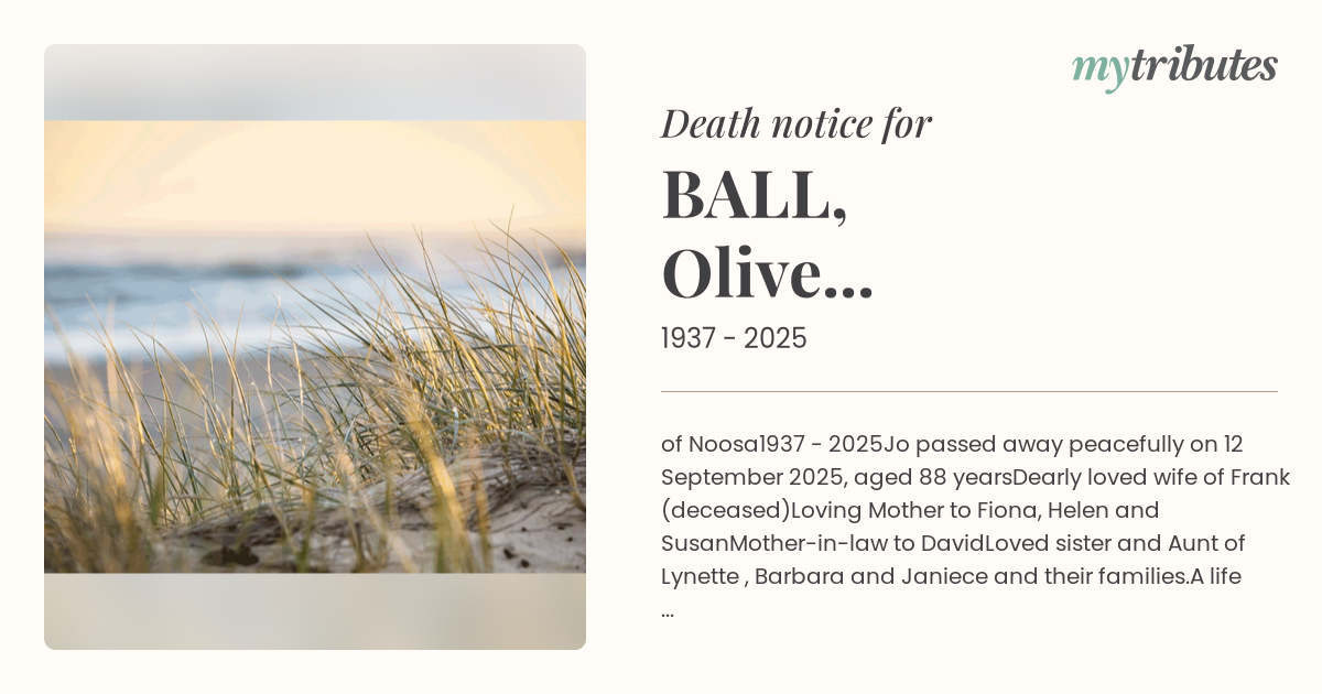 Jo passed away peacefully on 12 September 2025, aged 88 years