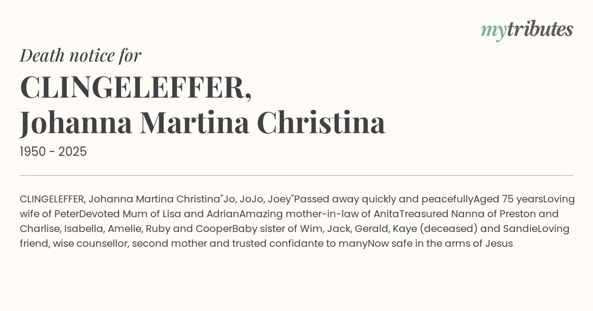 16°CCLINGELEFFER, Johanna Martina Christina