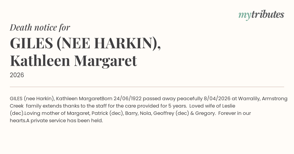 16°CGILES (nee Harkin), Kathleen Margaret