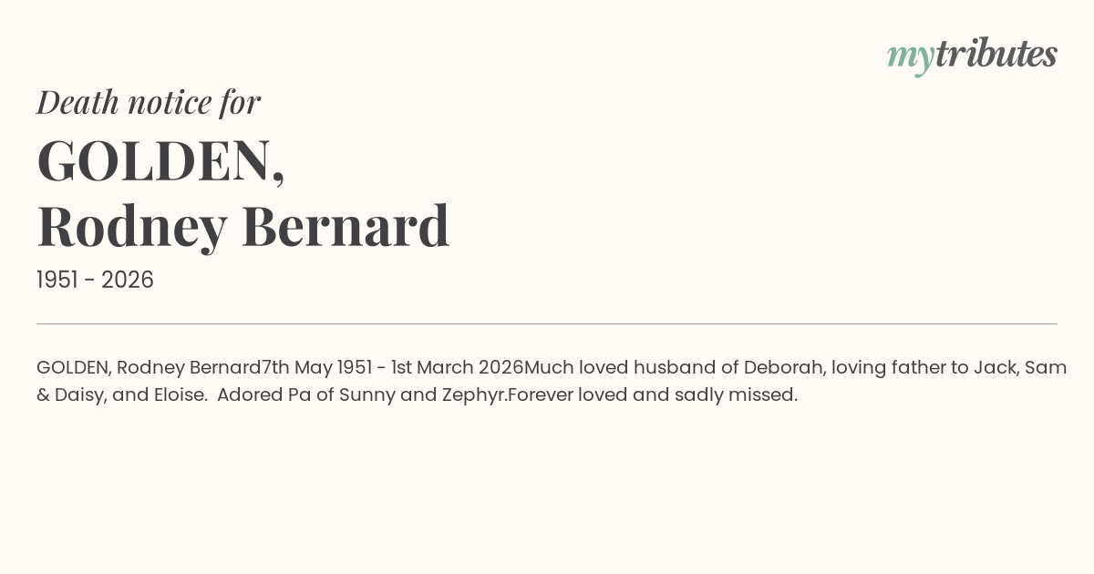 Much loved husband of Deborah, loving father to Jack, Sam & Daisy, and Eloise. Adored Pa of