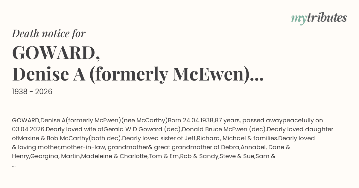 Gerald W D Goward (dec),