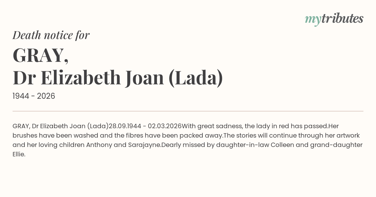 16°CGRAY, Dr Elizabeth Joan (Lada)
