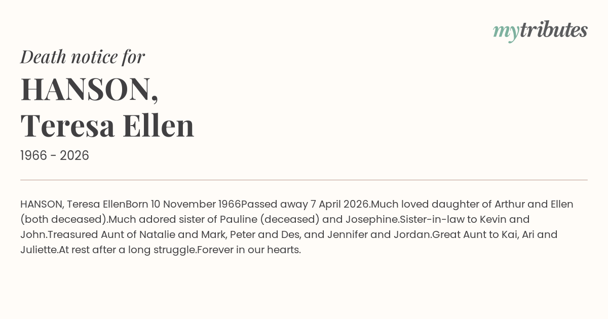 Passed away 7 April 2026.
