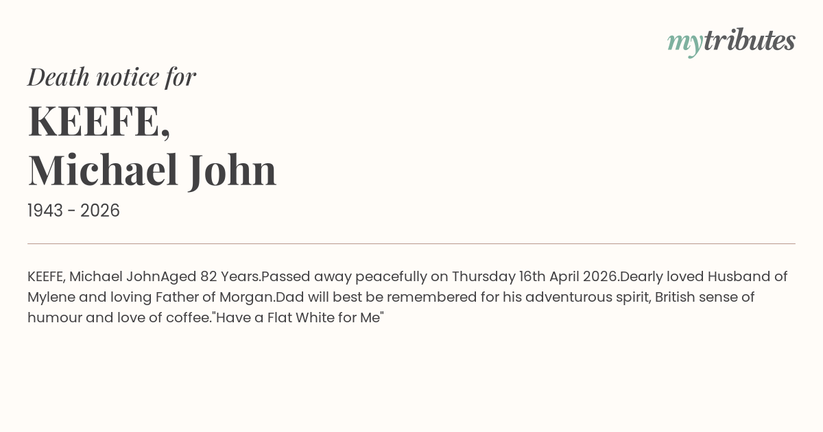 Passed away peacefully on Thursday 16th April 2026.