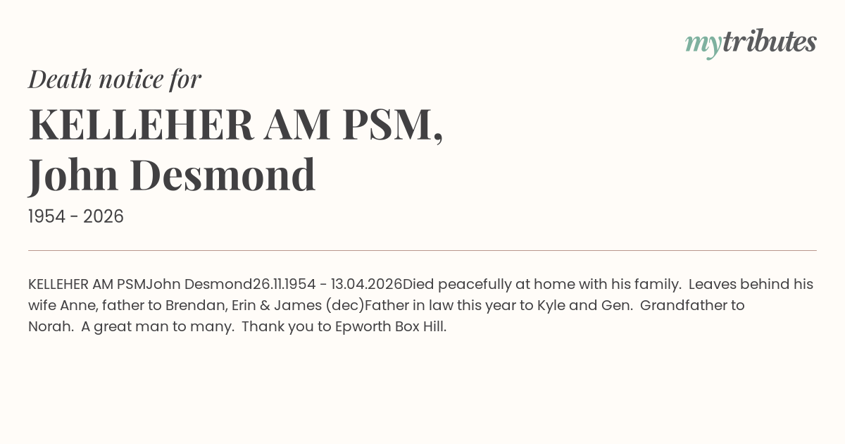 Leaves behind his wife Anne, father to Brendan, Erin & James (dec)