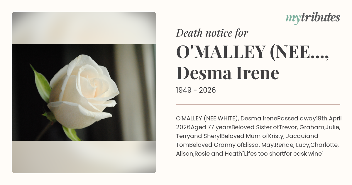 16°CO'MALLEY (NEE WHITE), Desma Irene