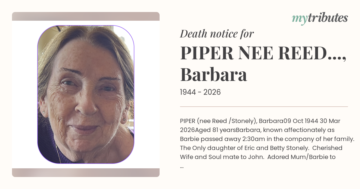 (nee Reed /Stonely), Barbara