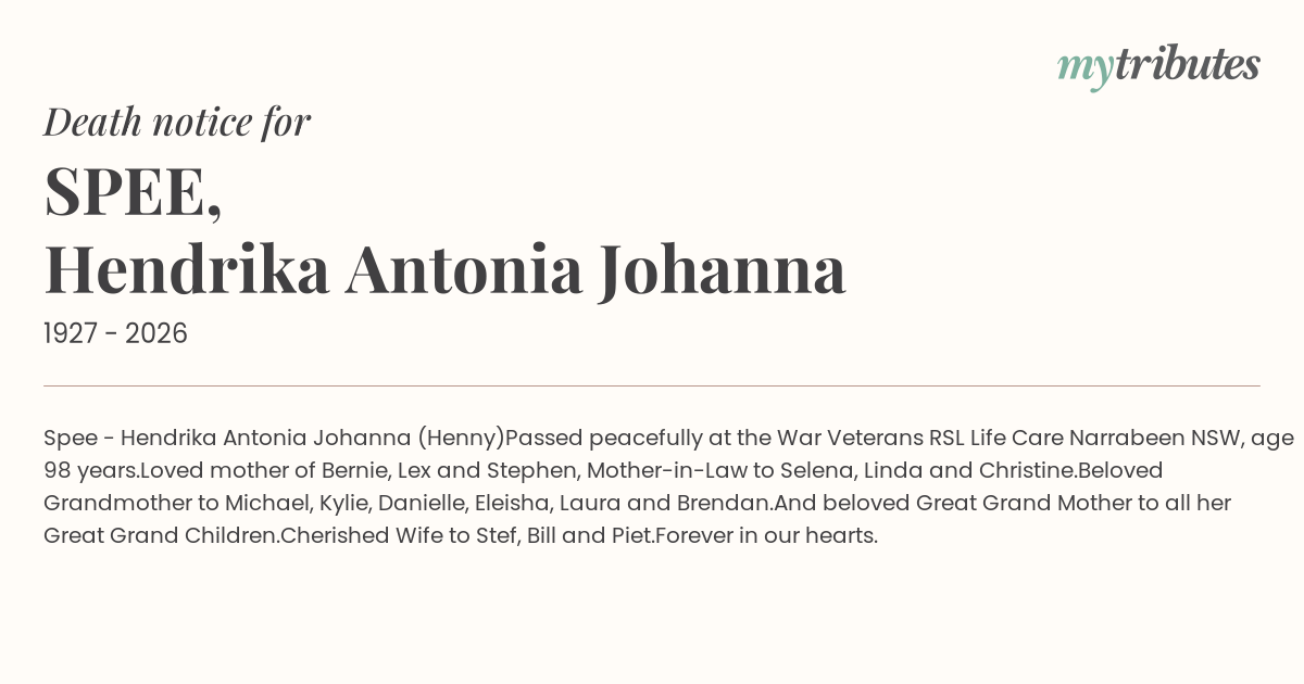 Passed peacefully at the War Veterans RSL Life Care Narrabeen NSW, age 98 years.