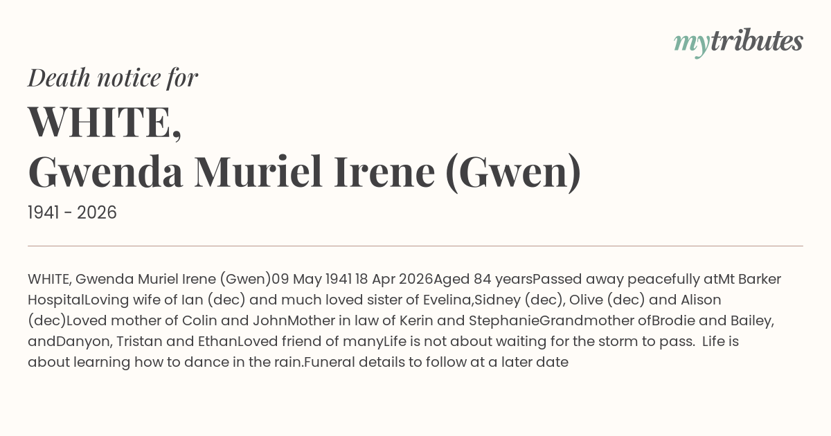 16°CWHITE, Gwenda Muriel Irene (Gwen)
