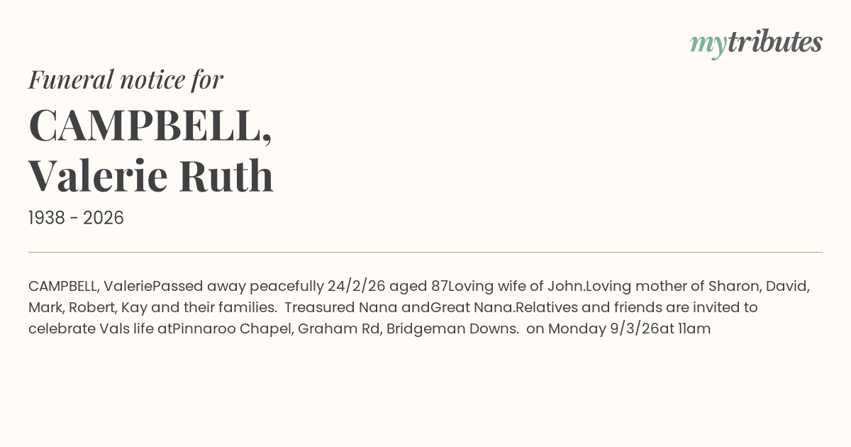Relatives and friends are invited to celebrate Val’s life at