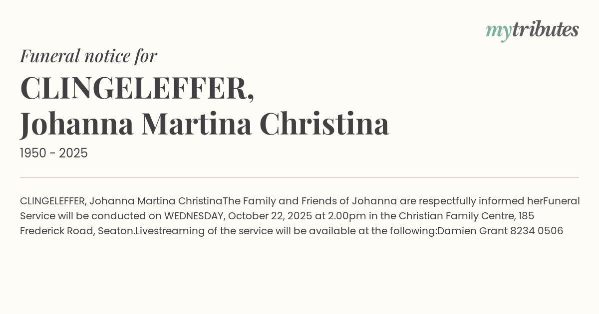 in the Christian Family Centre, 185 Frederick Road, Seaton.