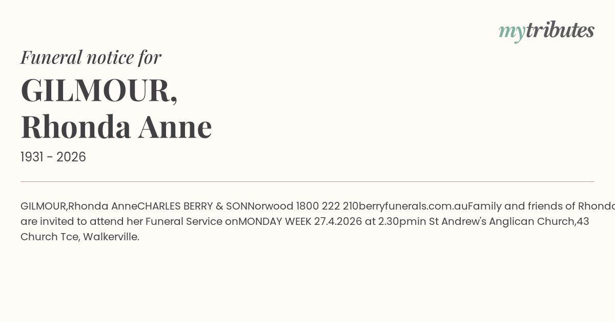 Family and friends of Rhonda are invited to attend her Funeral Service on